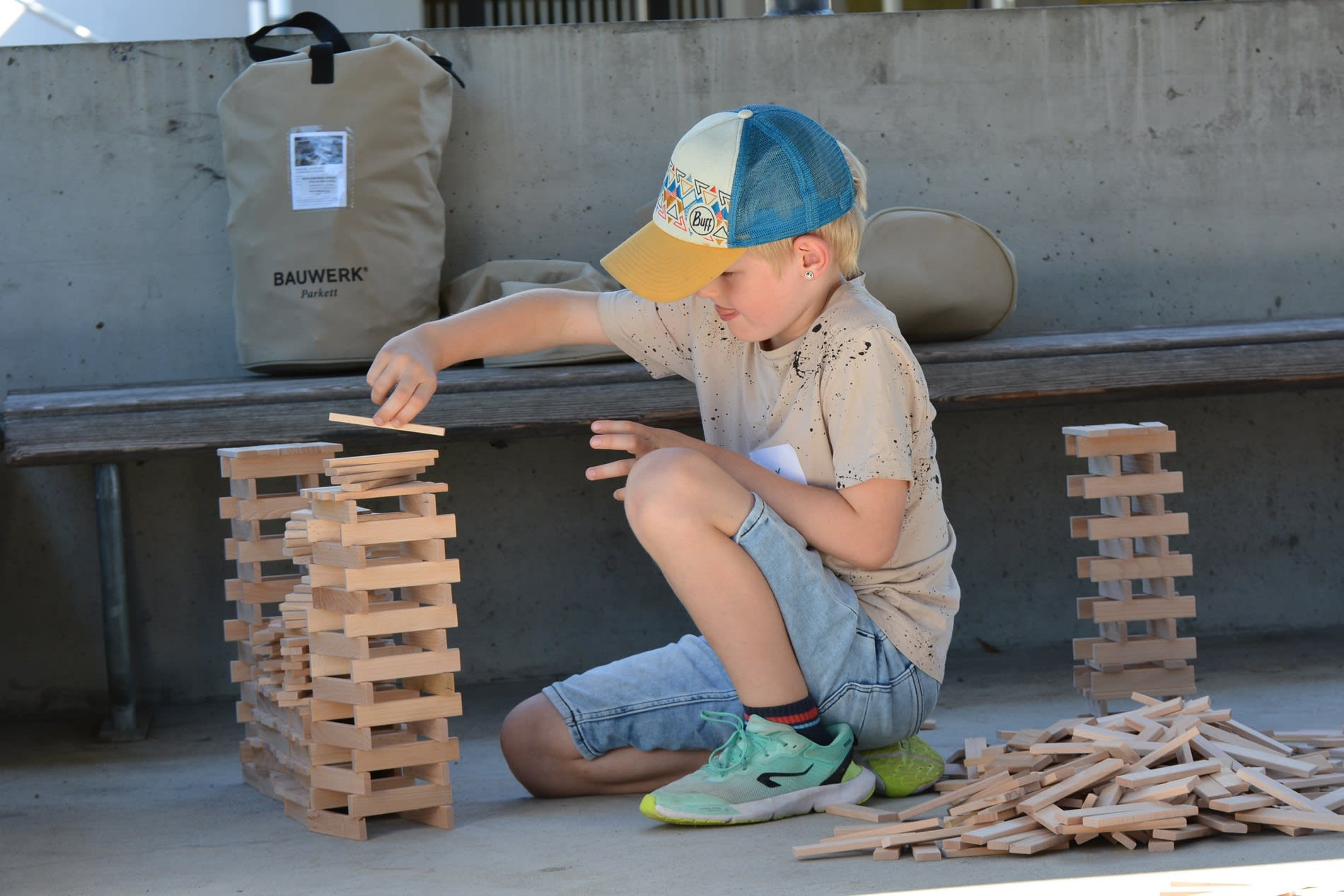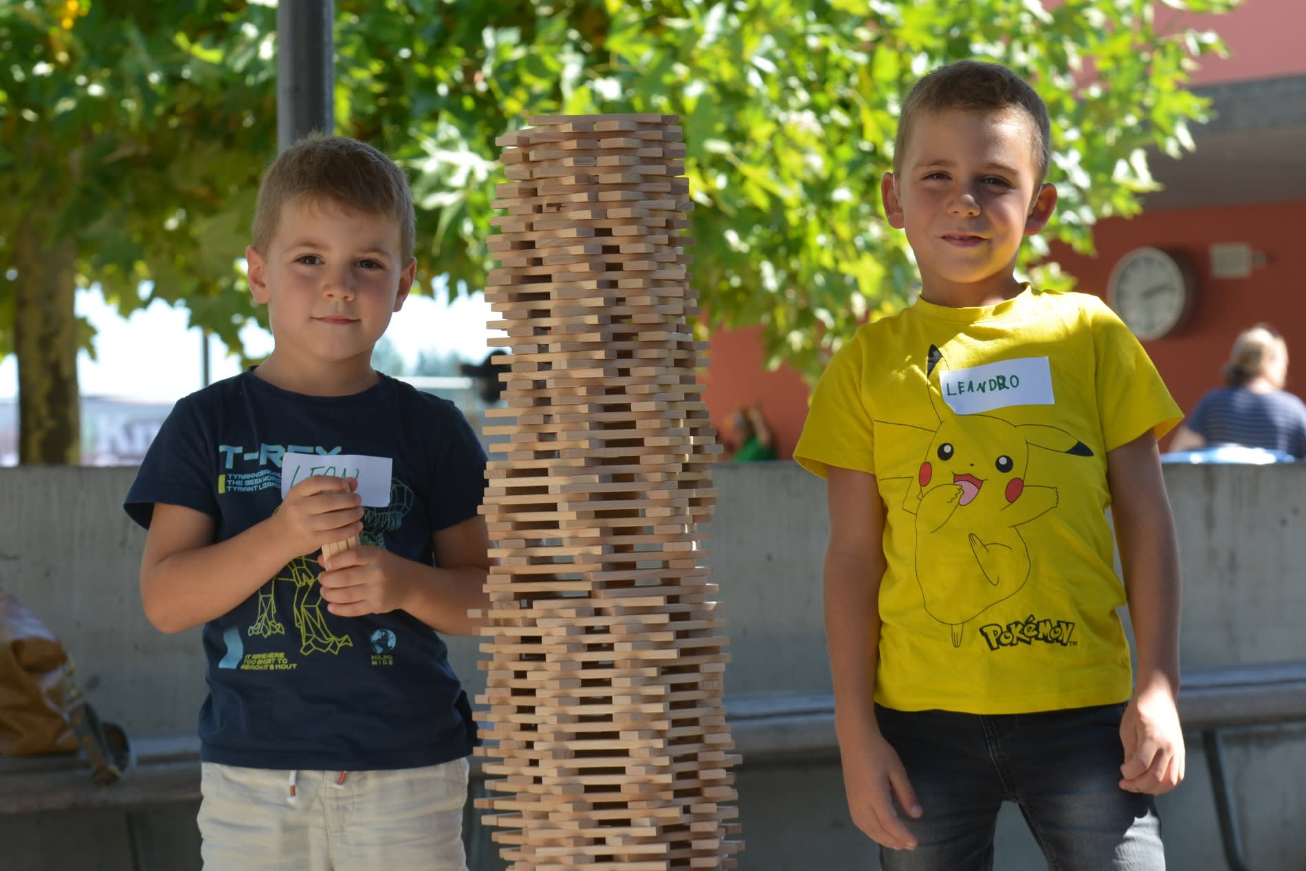 Für die kleinen Abenteurer gab es auch die Möglichkeit mit Bobbycars und Traktoren über das Gelände zu düsen oder im Brunnen zu fischen, was bei den Kindern für viel Aufregung und Spass sorgte. In der Turnhalle konnten sich die Kids austoben, herumtollen und miteinander spielen – und wer es lieber etwas ruhiger mochte, spielte im Kies unter den Platanen oder errichtete mit Kaplas tolle Türme und Skulpturen.
