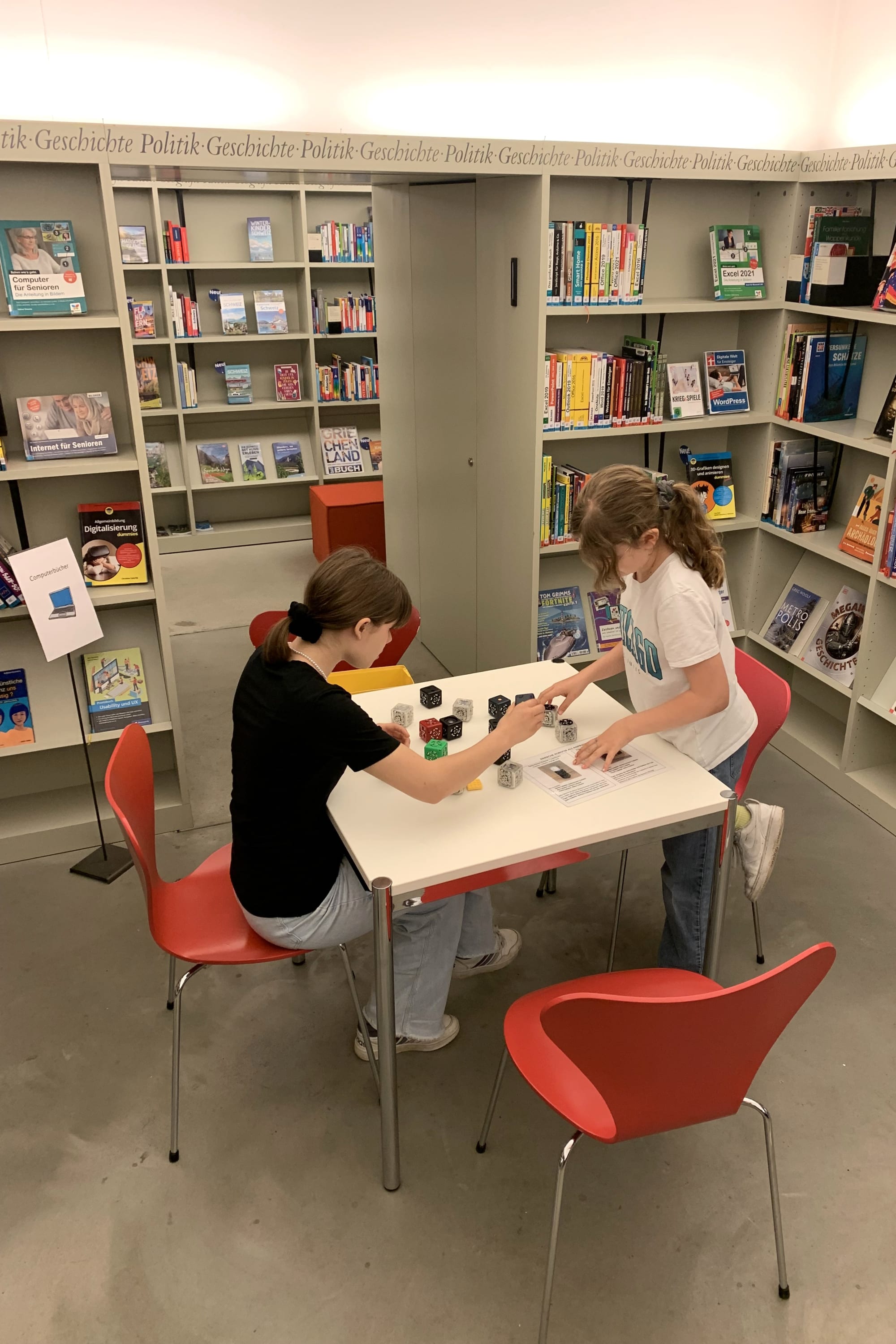 Und dann sind wir nach drinnen gegangen. Es hatte viele Filme und Bücher und Zeitungen.