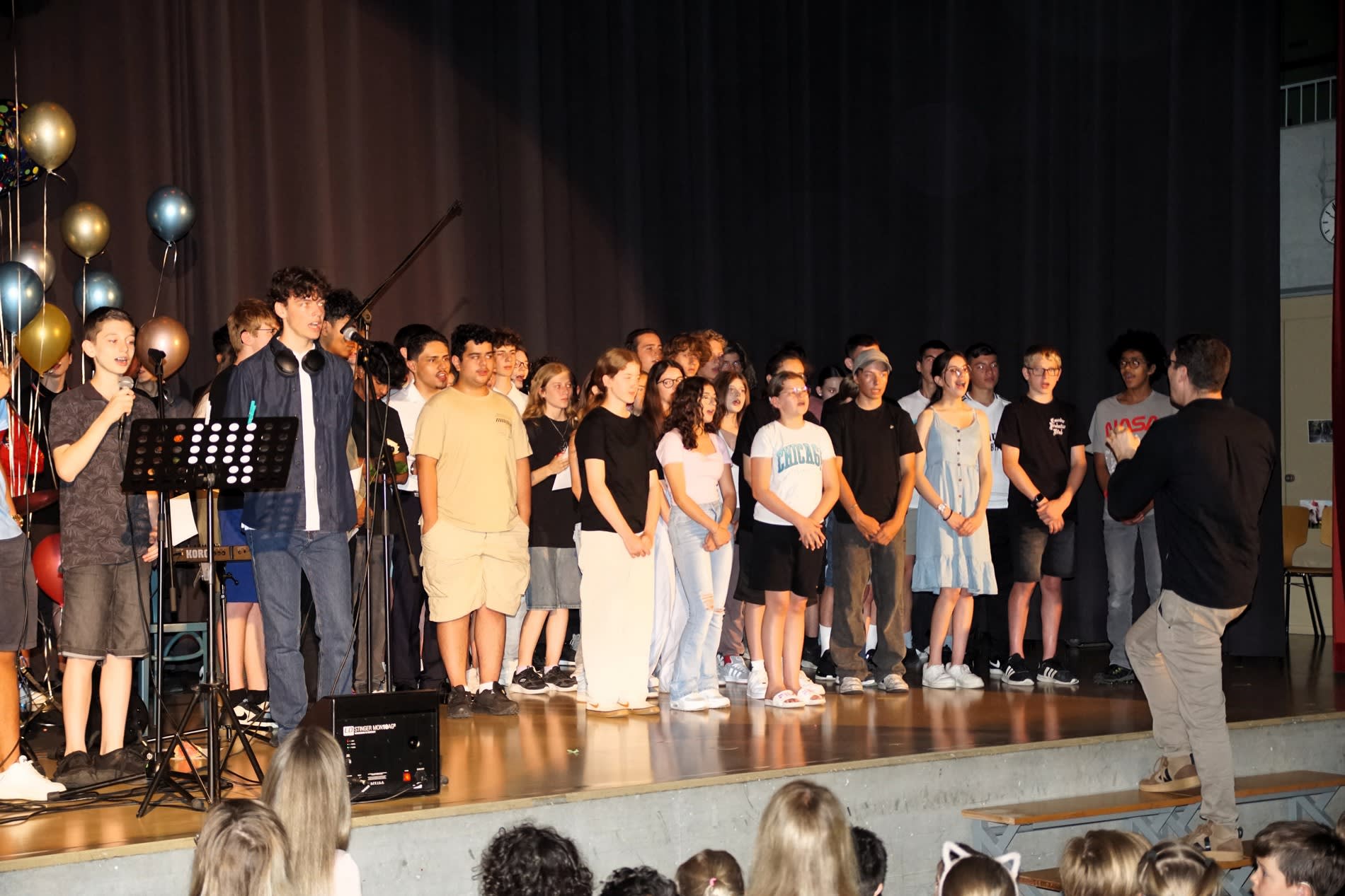 Die beiden Teams waren bunt gemischt. Mädchen und Knaben, 1.-3. Oberstufe und Mitarbeiter:innen spielten Seite an Seite und gegeneinander. «Team Gelb» ging früh und furios mit 4:0 in Führung. Es trafen David, Frau Widmer, Sara mit einem Lattenkreuz-Schuss und nach einigen sehenswerten Goalie-Paraden von Herrn Merki auch Loris. Loris traf noch zweimal und Semjon und Cristhian brachen «Team Rot» auf die Anzeigetafel. Nach dem ersten Drittel stand es 6:2.