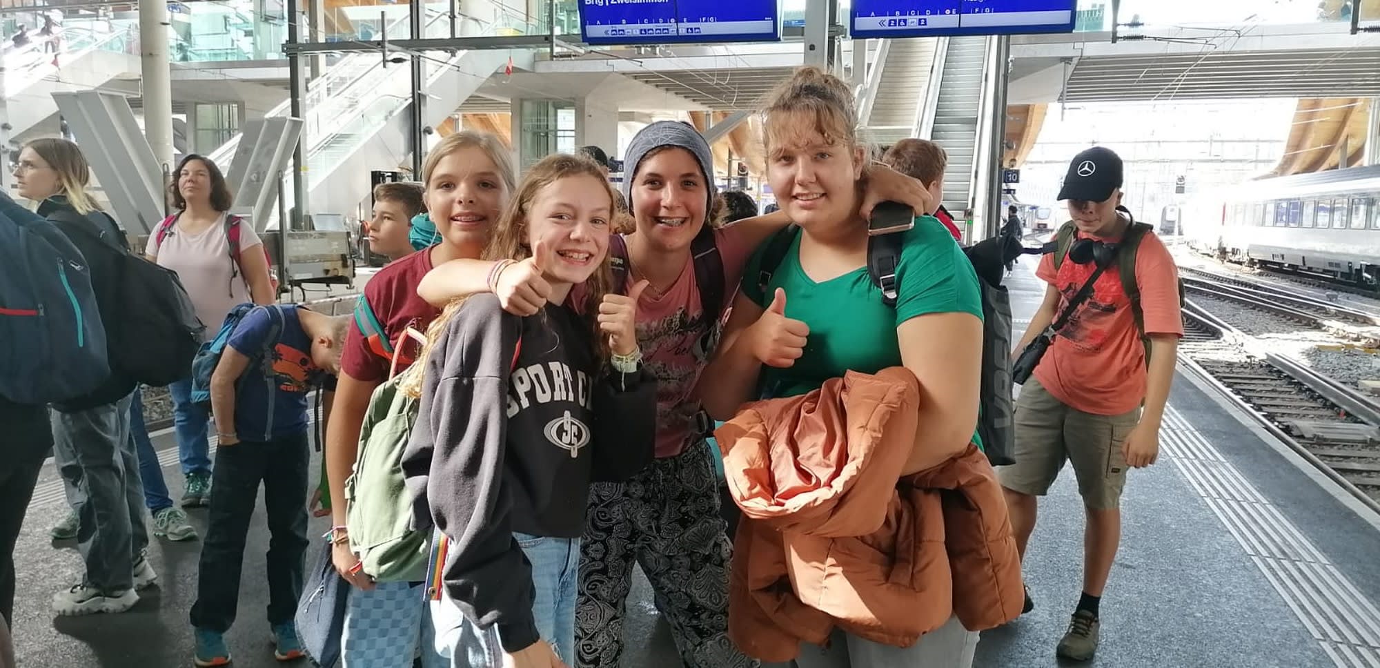 Die Reise begann: Mit Zug und Bus sind wir (31 Teilnehmende und 13 Leitende) zum Lagerhaus im schönen Adelboden gefahren. Wir haben die Koffer ausgepackt und das Haus erkundigt. Mit Kennenlernspielen vor dem Haus stimmten wir in das Lagerfeeling ein. Für das Abendessen durften sich die Kinder und Jugendliche schön bekleiden und sich von der Schiffscrew, der Lagerleitung mit einem Drei-Gang-Menü bedienen lassen. Auf diesem Kreuzfahrschiff stellt sich die Crew vor: der Kapitän, die Matrosinnen, die Schiffsmechanikerinnen, der Bademeister, die Schiffsärztin, die Navigatorin und das Küchenteam. Die Schiffsgäste (Kinder und Jugendliche) waren von dem Essen begeistert. Die Stimmung war gut und die Gäste freuen sich auf die bevorstehenden Tage der Kreuzfahrt.