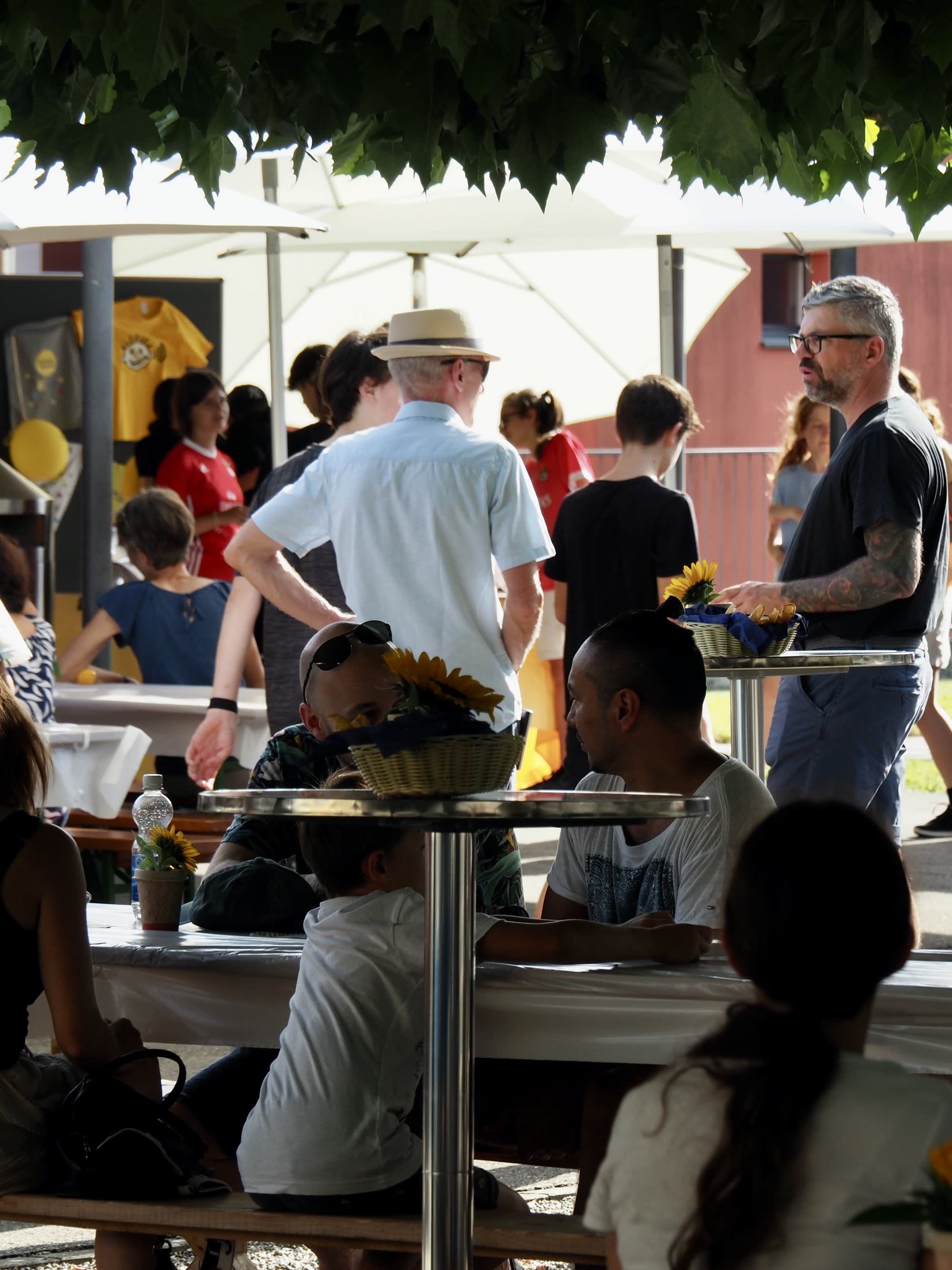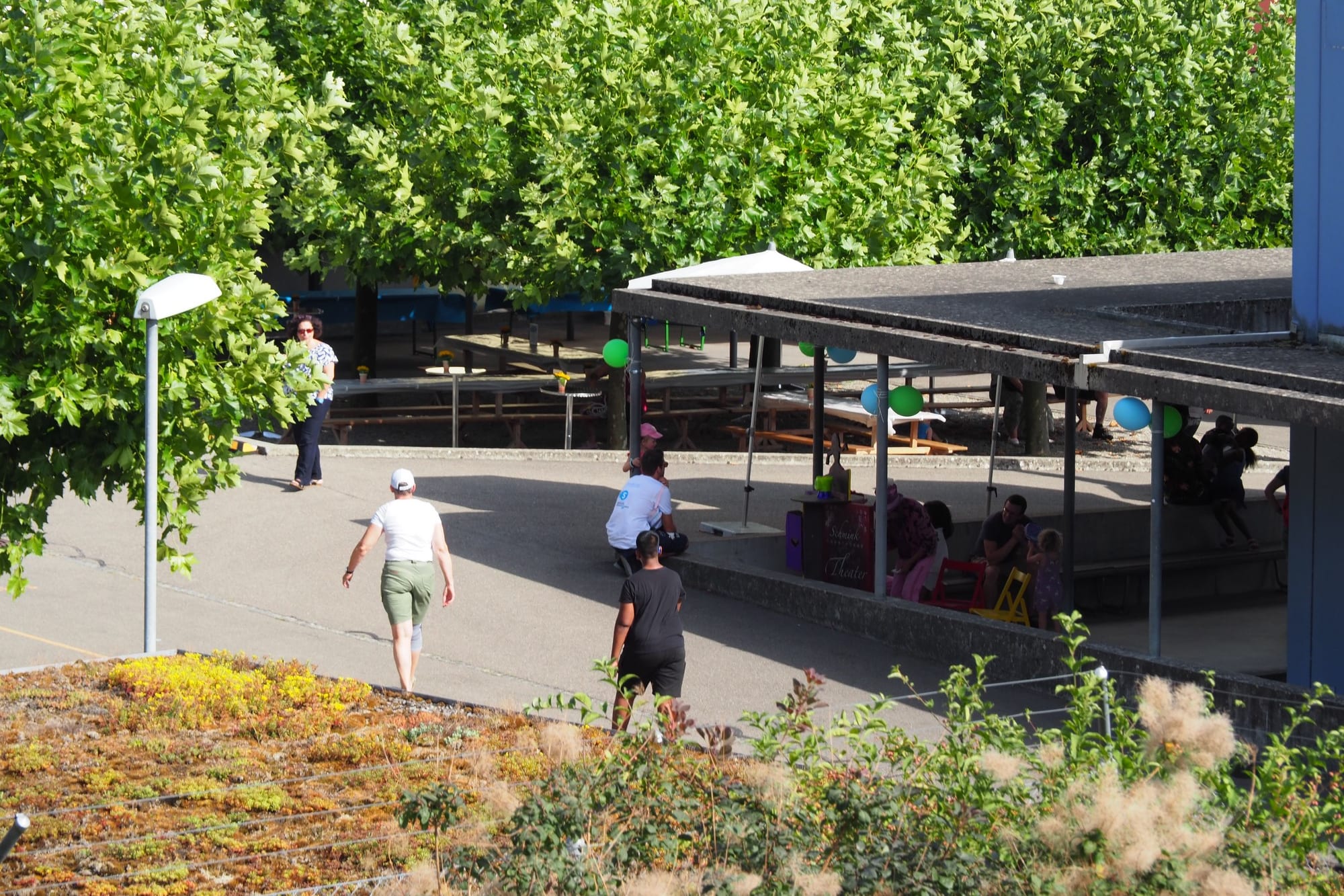 Wo möglich, wurde dieses Mal wegen den hohen Temperaturen alles etwas gemächlicher, wie im Süden, angegangen. Die Festbänke stellten der Technische Dienst zusammen mit Oberstufenklassen in der Frühe bei 19 Grad auf. Mit der Zubereitung der verlockenden Desserts begann eine Köchin bereits um 5.30 Uhr, um ein Schmelzen der Zutaten zu vermeiden.