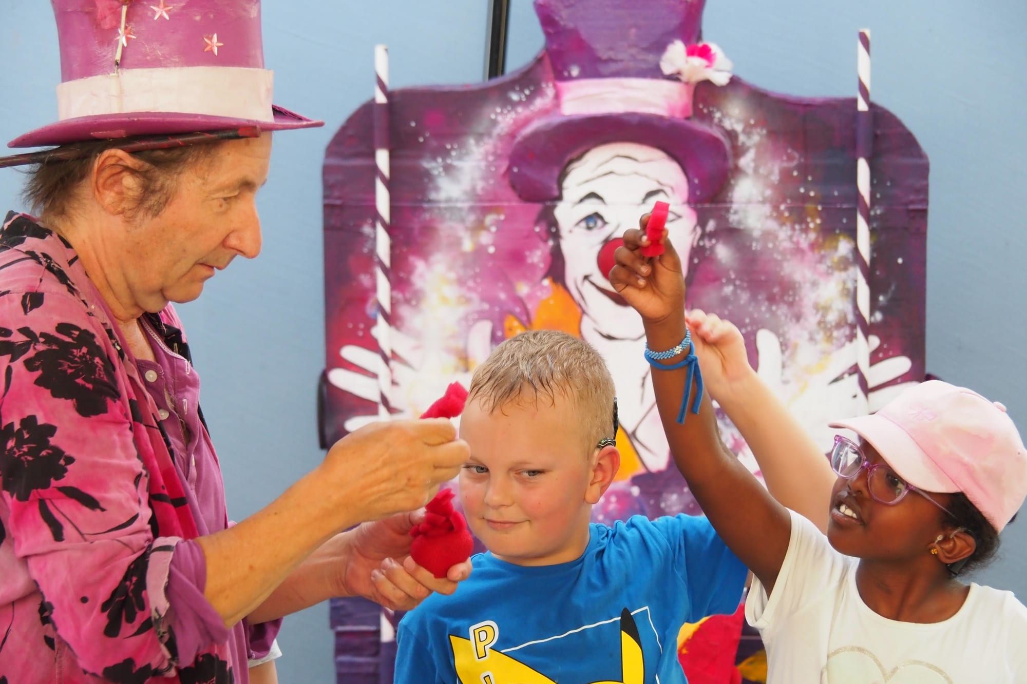 Dekoration: 100 Ballone, 100 Sonnenblumen, 150 Kopien von 30 Kinderzeichnungen